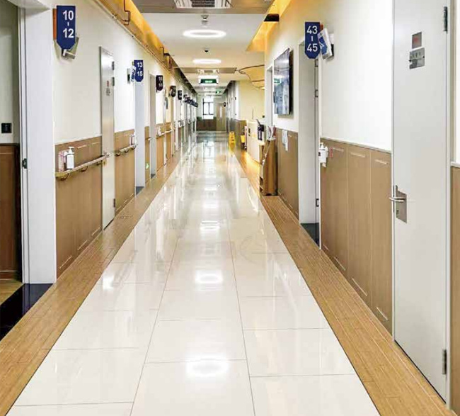• 不易污染、不易老化、表面色澤飽滿、能很好地還原裝飾層的色彩和花紋,密度和良好的防水性、防變形、耐磨、A級防火、潔菌等性能,同時也是國內外少數防裂、抗變形兩項指標同時達標的企業之一。被廣泛地用于醫養室內墻面及頂面裝飾,讓顧客放心使用,無后顧之憂。